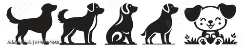 Cute puppy vector silhouette. Vector silhouette of dog set on white background.