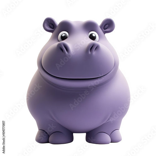 Cute purple hippopotamus character 3d icon PNG, cartoon style minimal on transparent, isolate on white background