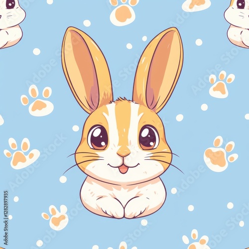 Cute rabbit face and paw print seamless pattern design for children's products playful and colorful background