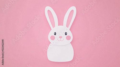 Cute rabbit illustration, playful bunny character on soft pink background, ideal for children’s decor or Easter themes.