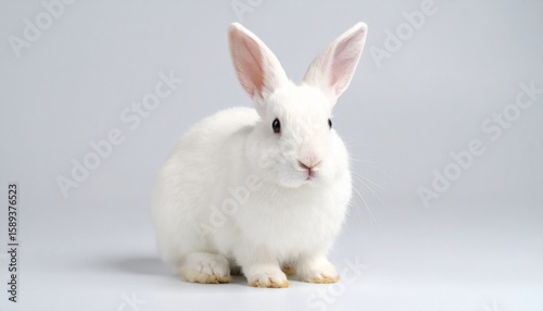 Cute rabbit white color and on white background, Generated with AI.
