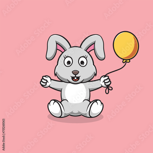Cute rabbit with party balloons cartoon illustration