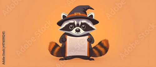 Cute Raccoon in Witch Hat Holding Blank Sign for Halloween