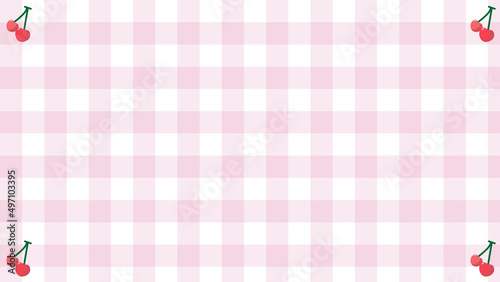 cute red cherry on pink checkered, gingham, plaid pattern background