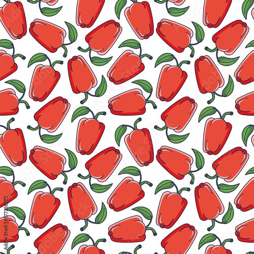 Cute Red Pepper seamless pattern in doodle style. Vector hand drawn cartoon Red Pepper illustration.