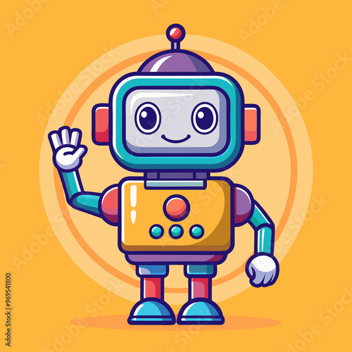 Cute robot cartoon icon character, line stoke isolated, graphic design sign