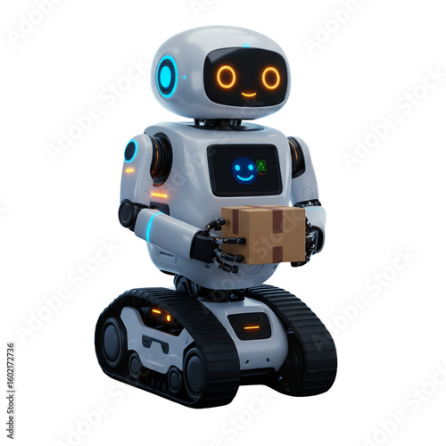Cute Robot Delivery Bot Holding a Package