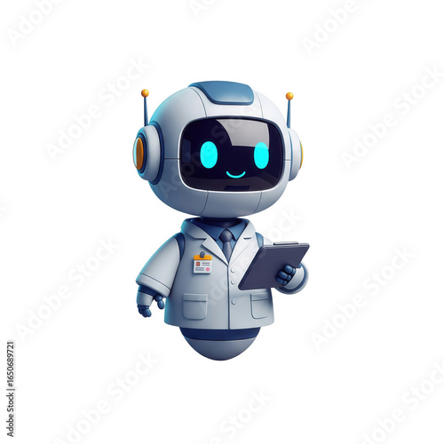 Cute Robot Doctor With Digital Tablet Isolated on Transparent Background 3D Rendering
