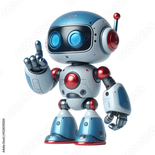 cute robot isolated on transparent background 3d character pointing the finger