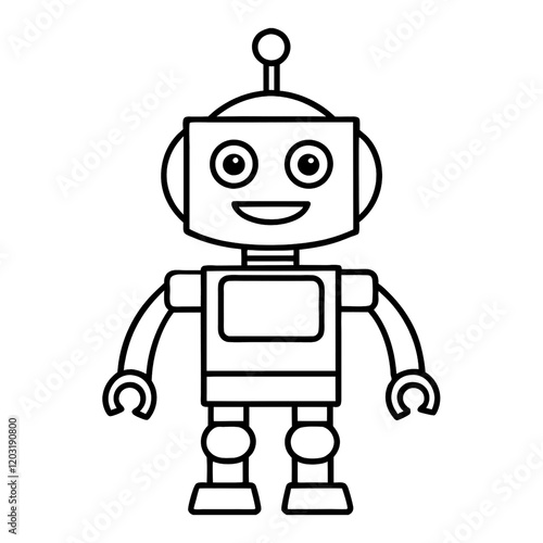 Cute Robot with Rounded Body and Arms Outline for Coloring Page