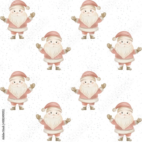 Cute Santa Claus characters in playful poses on a snowy background for festive decoration