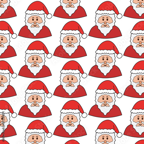 Cute Santa Claus face, vector seamless Christmas pattern.