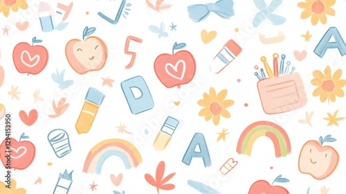 Cute school supplies seamless pattern