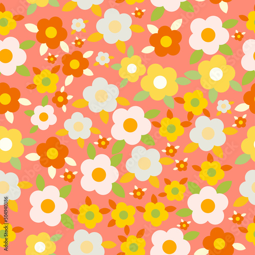 Cute seamless pattern on a warm pink background with beautiful and festive flowers.Texture for scrapbooking, wrapping paper, invitations. Vector illustration.
