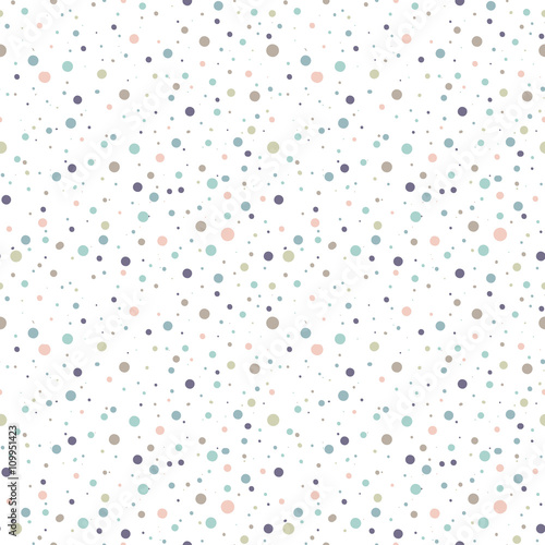 Cute seamless pattern or texture with colorful polka dots on white background.