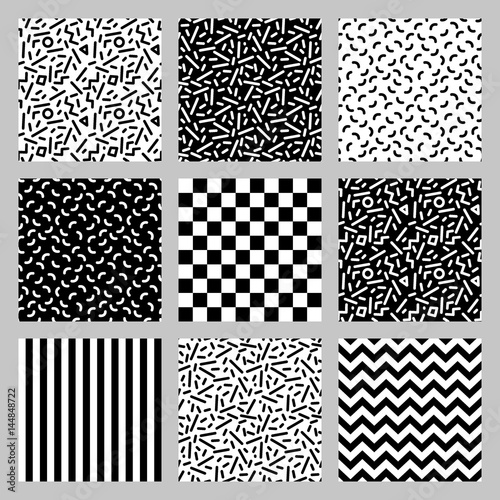 Cute set of seamless geometric patterns in 80's style