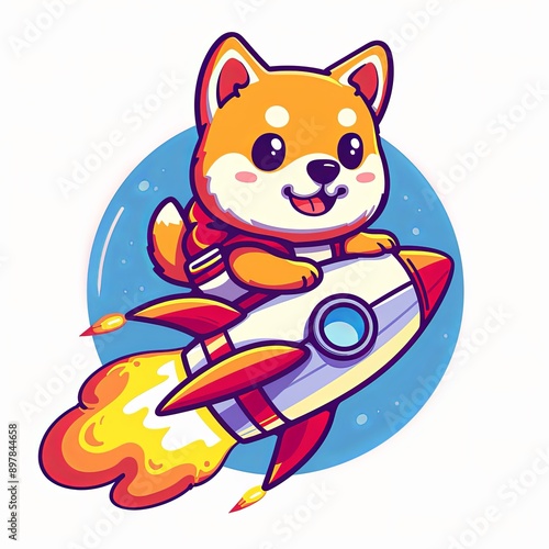 Cute Shiba Inu Dog Riding a Rocket in Space