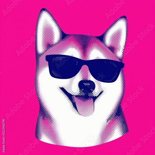 Cute shiba inu dog with glasses with halftone effect