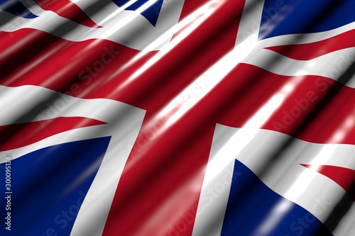cute shining - looking like plastic flag of United Kingdom (UK) with big folds lying flat in corner - any holiday flag 3d illustration..