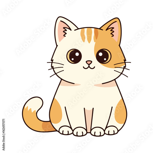 Cute Sitting Cat Vector Illustration in Flat Style with Warm Colors