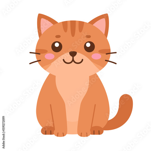 Cute sitting ginger tabby cat with a happy expression, pink cheeks, and forehead stripes.