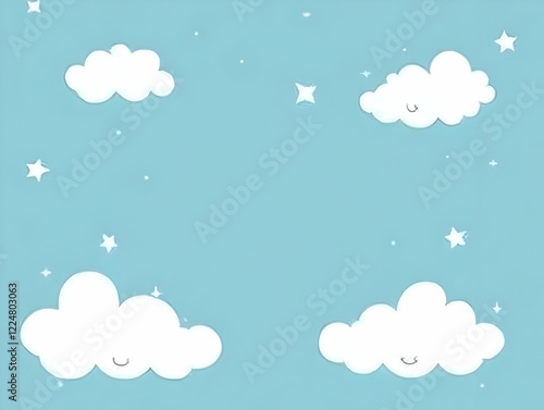 Cute Smiling Clouds and Stars Float Gently Across a Soft Blue Sky Background Illustration