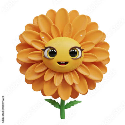 Cute smiling orange flower character with big eyes isolated on transparent background