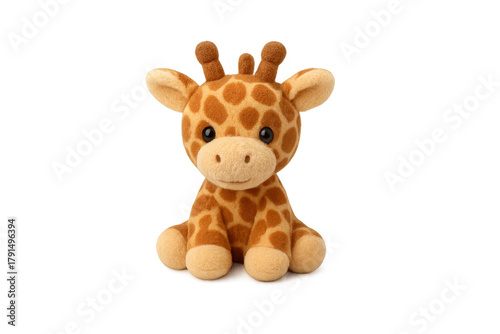 Cute spotted giraffe plush toy sitting transparent background