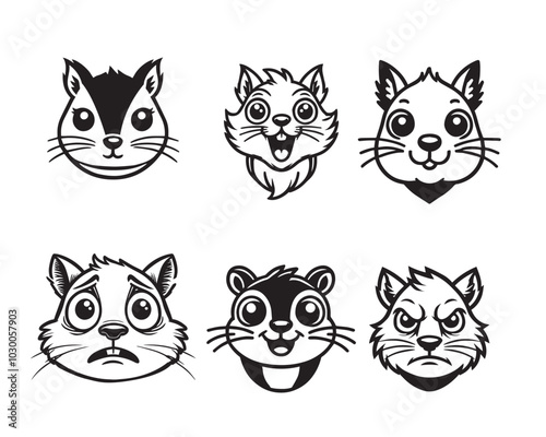 Cute Squirrel face Vector illustration Pack - Squirrel Rodent Outline ClipArt Bundle