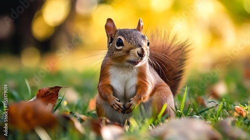 Cute Squirrel in Autumn Park. Adorable Wildlife in Nature.