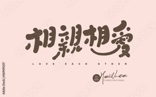 相親相愛。Cute style font "Love each other", Chinese title font material, advertising copy material.