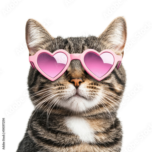 Cute tabby cat portrait with heart glasses studio mockup fun