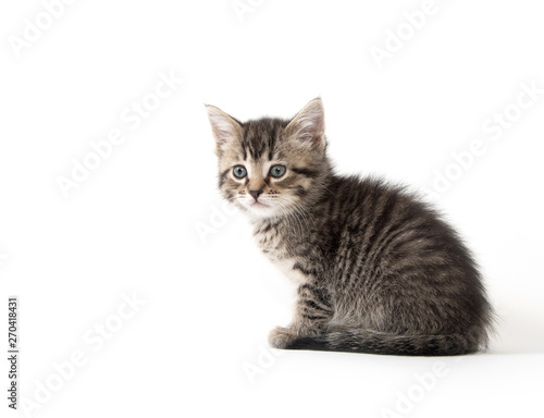 Cute tabby kitten on white