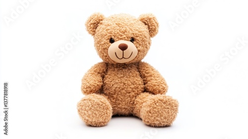 Cute Teddy Bear Sitting Isolated on White Background for Childhood Concepts