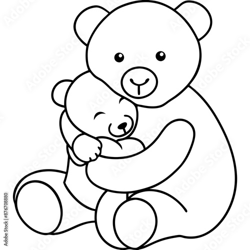 Cute Teddy Bear Vector Design for Kids' Graphics Adorable Bear Hug Illustration in Clean Line Art.