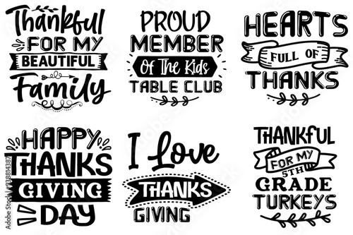 Cute Thanksgiving Typography, Typographic Emblems Set Vector Illustration for Social Media Post, T-Shirt Design, Magazine