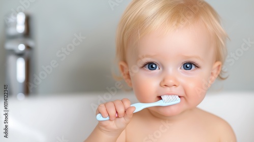 Cute toddler brushing hair in bathroom setting for daily routine and child development concepts