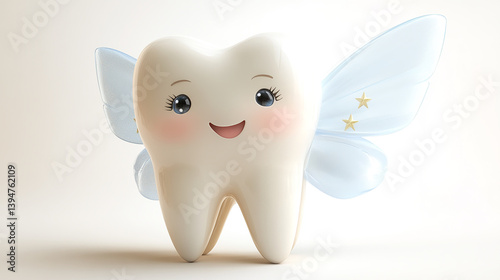 Cute Tooth Fairy Character with Wings and Smiling Face