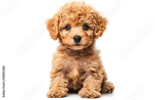 Cute toy poodle sitting on white background