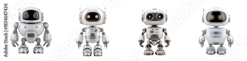 Cute Toy Robots Set, Modern AI, Isolated on White