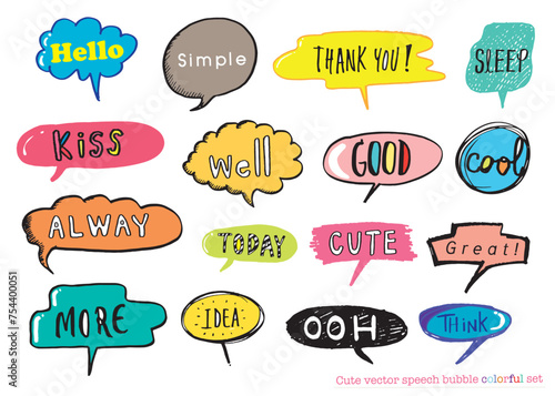 Cute vector speech bubble colorful set,Hand drawn set of speech bubbles with handwritten for book ,card, business, poster design. Vector illustration design for fashion fabrics, textile graphics