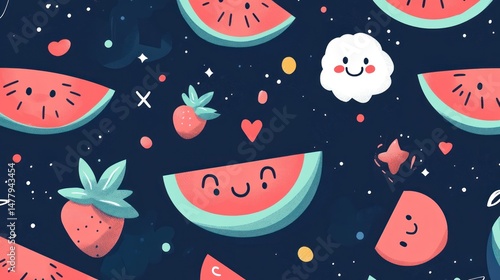Cute watermelon and strawberry pattern