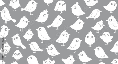 Cute White Birds Seamless Pattern Gray Background Baby Shower Kids Fab