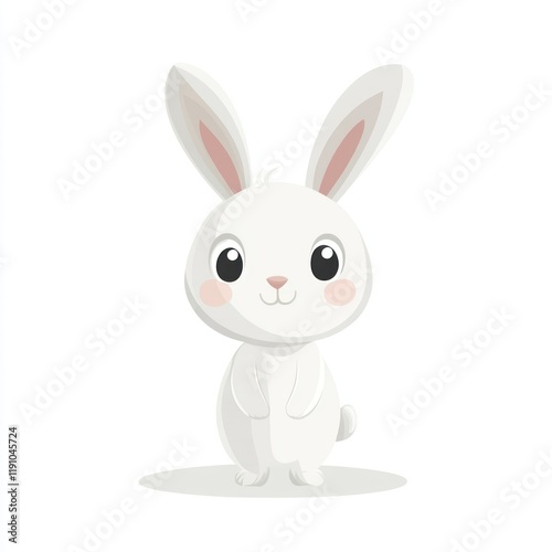 Cute white bunny illustration, standing, isolated, white background, children's book