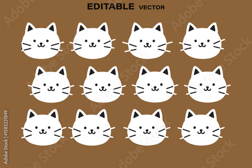 Cute white cat faces with black ears and whiskers arranged in a grid pattern on a brown background