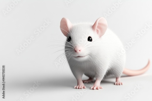 Cute white mouse, front view, studio shot
