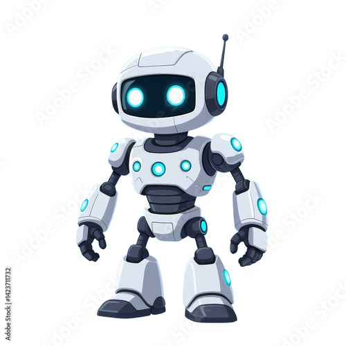 Cute White Robot Cartoon Character with Glowing Eyes transparent background