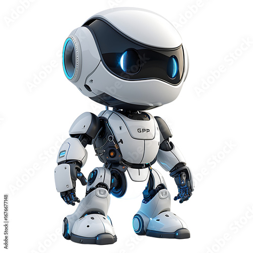 Cute White Robot on White Background
