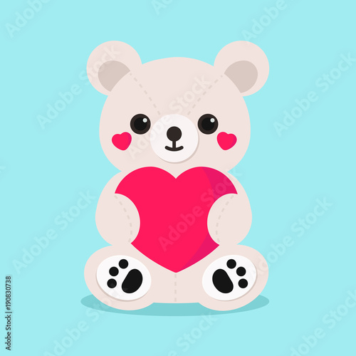 Cute White Stuffed Bear Holding a Heart (Valentine's Day)