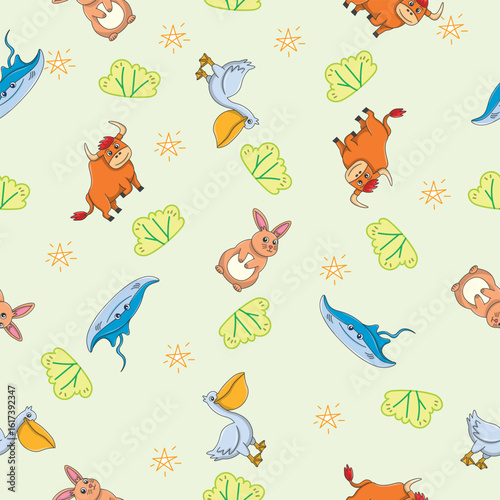 Cute wild animals seamless pattern for baby shower decor, nursery print, kindergarteen wallpaper, fabric, and textile. Vector illustration